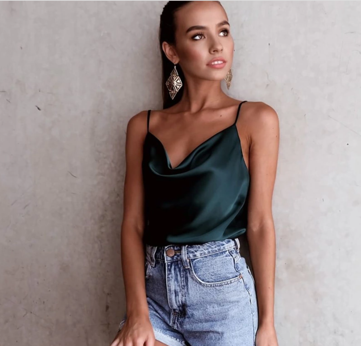 Look soft and sexy in this chiffon spaghetti strap camisoles with your favorite pair of denim shorts.