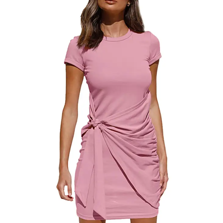 Step into elegance with our captivating Jersey Knotted Wrap Casual Dress, a fusion of polyester, cotton, and spandex intricately crafted through knitting methods. This timeless piece boasts a crew-neck neckline and natural waistline exuding sophistication at every turn. The cascading ruffle front tie adds a playful touch while maintaining an air of chic allure for those who appreciate the finer details. Imagine yourself wandering through quaint sunlit streets in search of treasures at a weekend market or savoring delightful bites by the seaside; this dress seamlessly fits both scenarios with ease. Whether you seek to elevate your daytime ensemble effortlessly or command attention during evening soirees under the stars - this dress' impeccable design caters to all occasions regardless of size ranging from S to 2XL. Embrace unparalleled luxury each time you slip into our enchanting Jersey Knotted Wrap Casual Dress because true style knows no boundaries when it comes to expressing your individuality